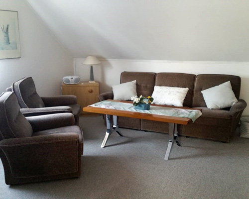 In der Ferienwohnung stehen eine gut ausgestattete Küche, ein Duschbad sowie ein Fernseher (mit Satellitenanschluß) zur Verfügung. Im Wohnzimmer gibt es ein ausklappbares Schrank-Doppelbett.